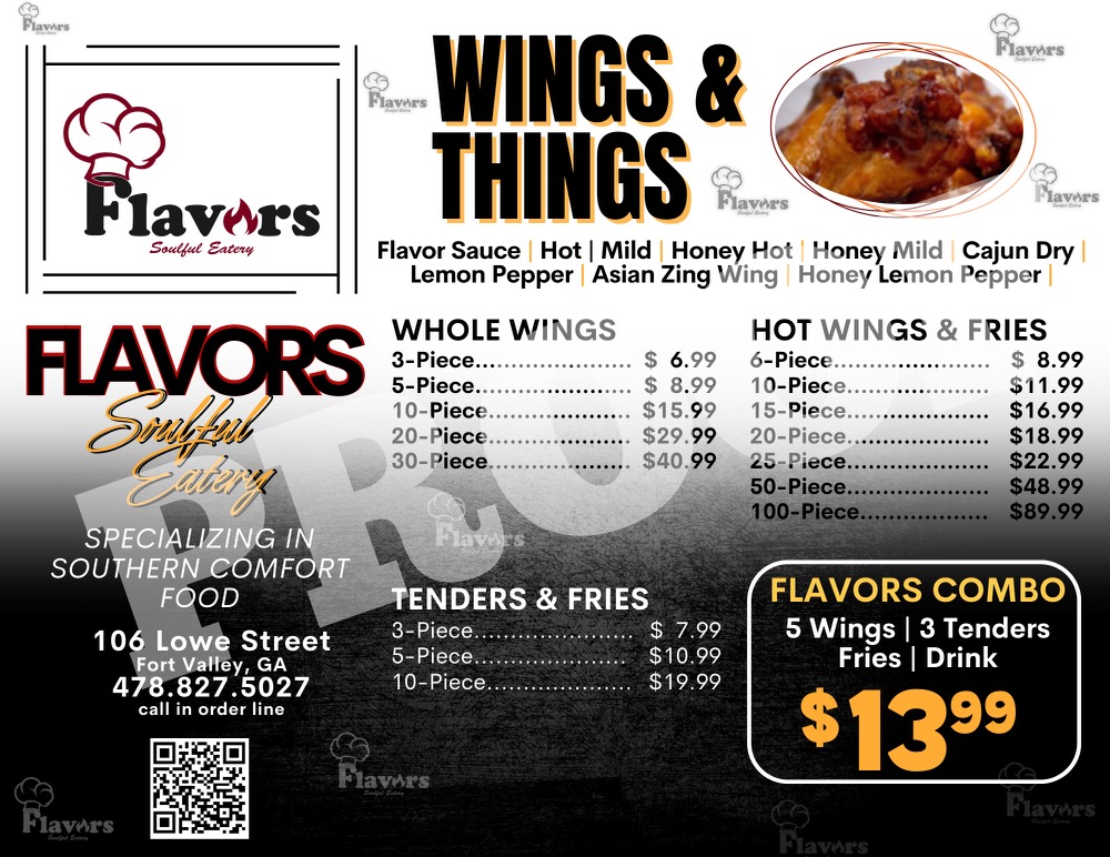 Located in Fort Valley, GA, Flavors Soulful Eatery is a culinary gem offering a delightful array of dishes that embody authentic soul food traditions. With rave reviews from satisfied customers, the menu highlights include the tender Curry Goat, celebrated for its perfect spice level, and mouthwatering Whole Chicken Wings that leave diners eager for more.